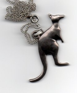 Kangaroo design Pendant on Chain pewter on hang cell, Made in Australia.